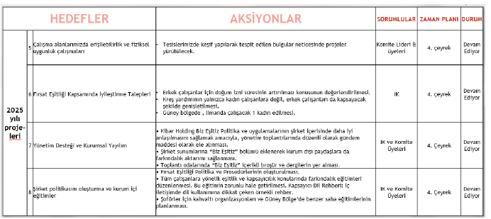 Son dört madde ise 2025 yılında belirlenen çalışma hedeflerini içermektedir.