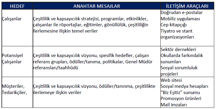- Çeşitlilik ve kapsayıcılık ile ilgili konularda tüm çalışanların farkındalığının artırılarak şirket içerisinde kültürün oluşturulmasına katkı sağlanması
